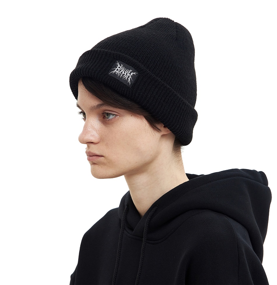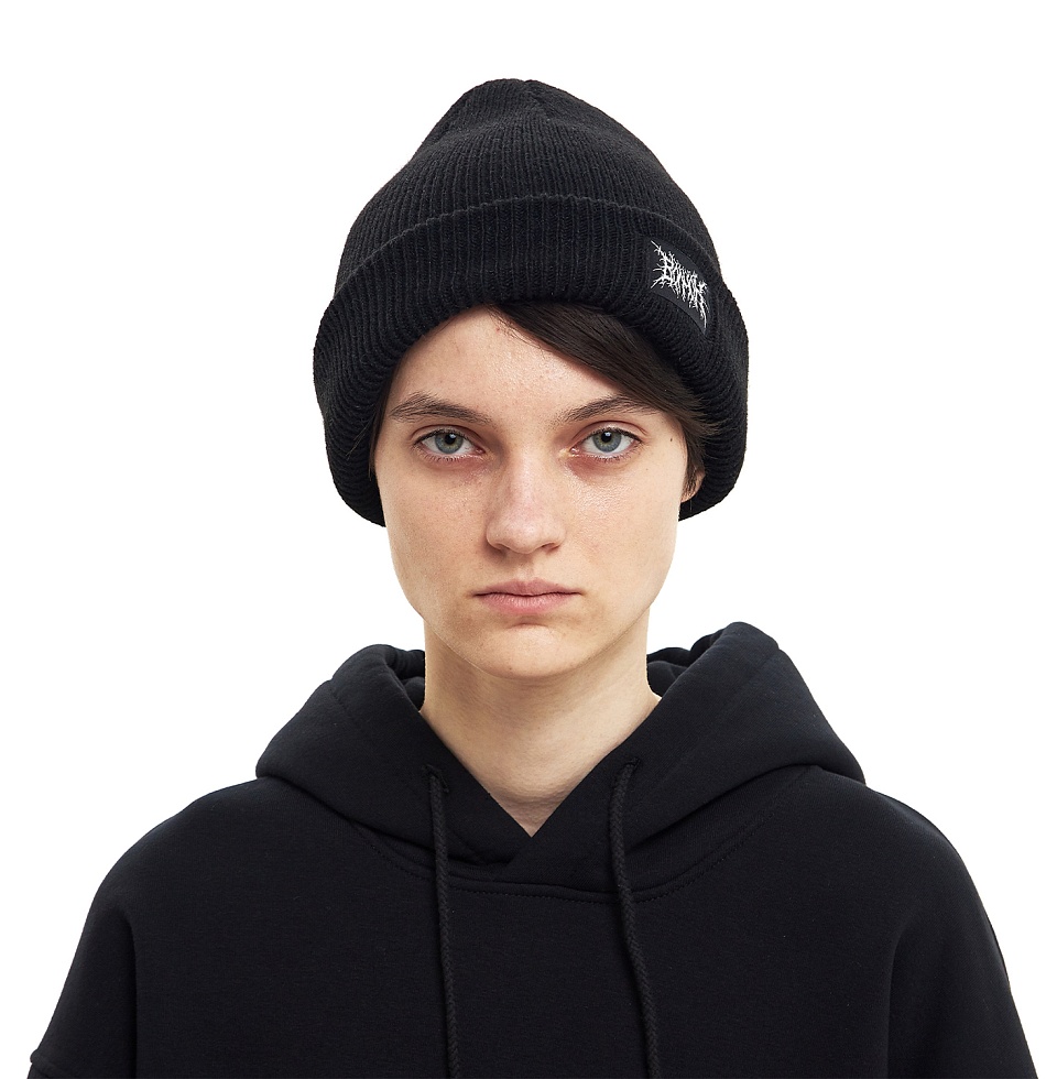 Beanie with a jaсquard patch with logo on the lapel. One size.