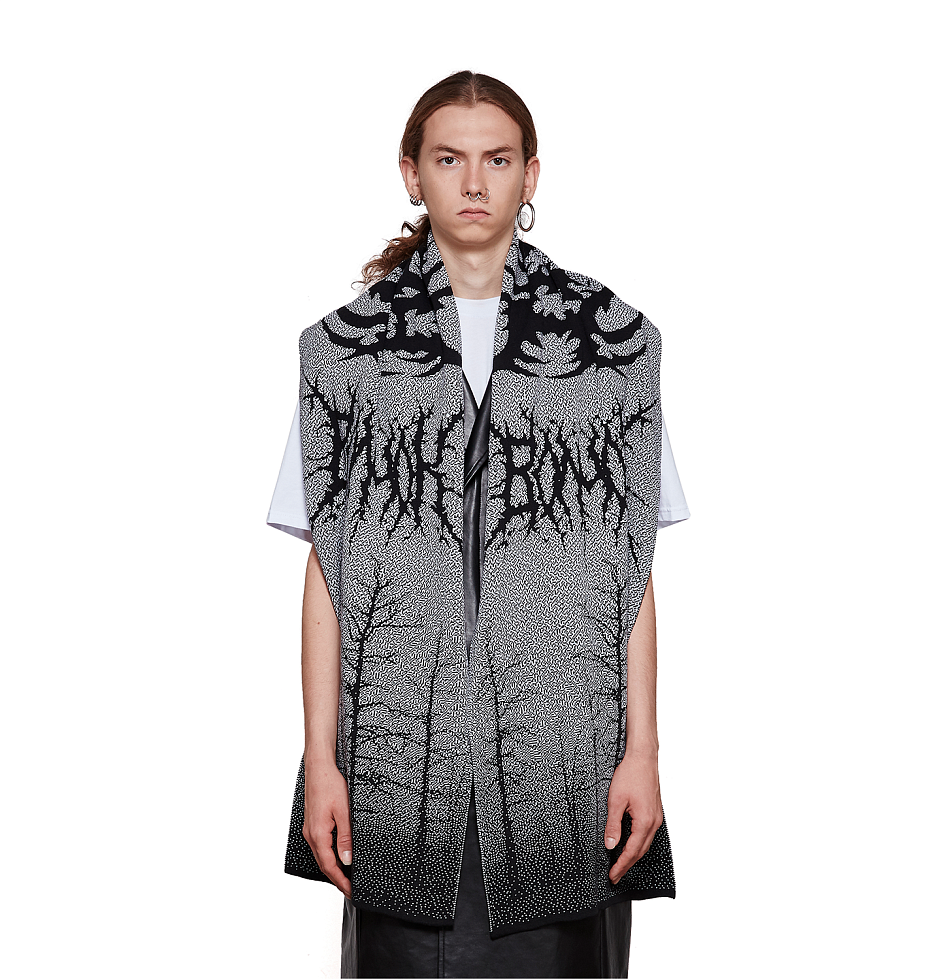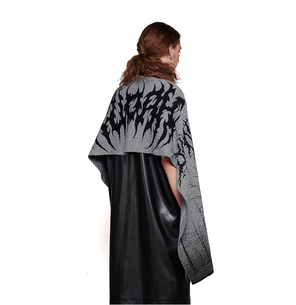 Wide scarf decorated with the brand logo and the name of the TIRAN collection. Machine knitting. 190x40 cm.