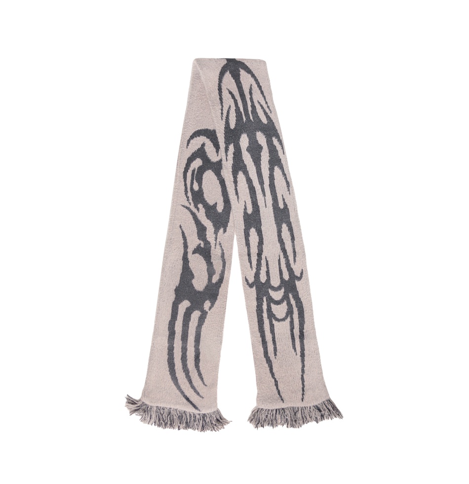 Classic fringed scarf with a contrasting pattern on both sides. Machine knitting with fluffy yarn.